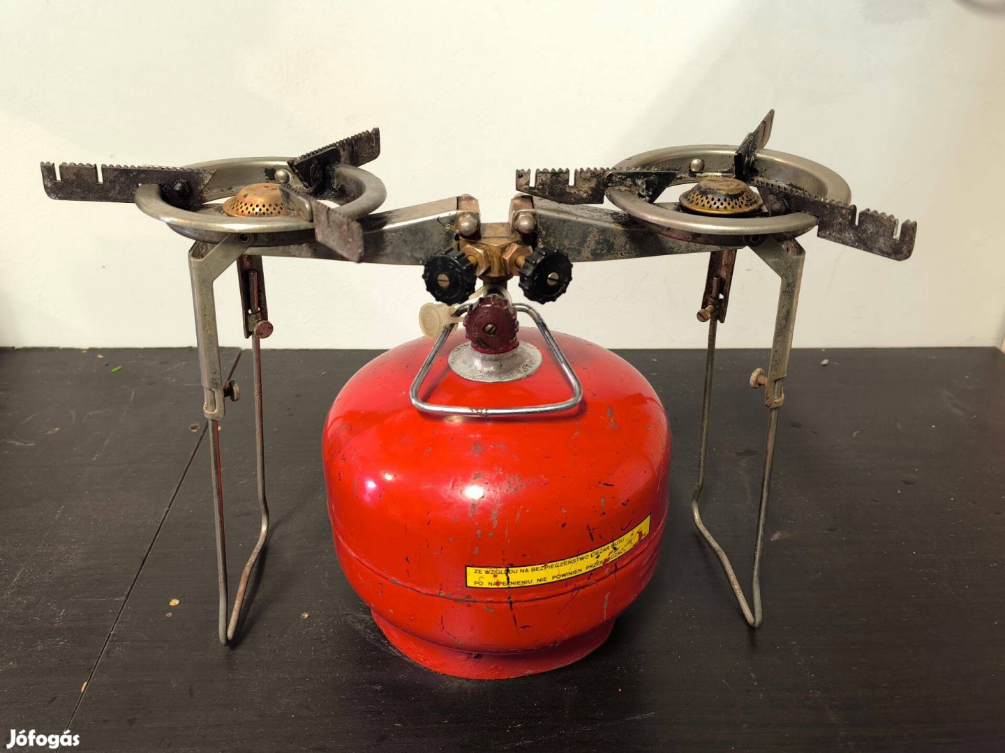 "Prema", két égőfejes, hordozható, kemping gázfőző eladó feltöltött PB gázpalackkal.