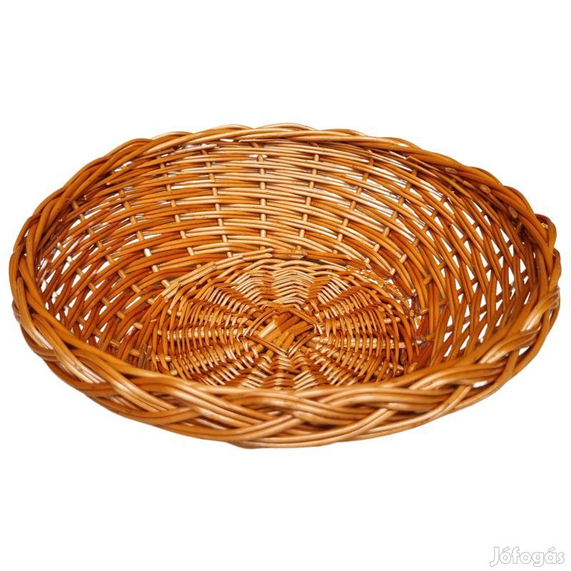 Kenyeres vessző kosár kerek, vesszőből fonva, méretei kb 26 cm átmérő és 6 cm magas.