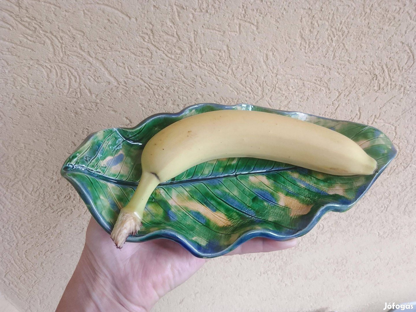 Kézzel formázott,levél alakú kerámia kínálótál.