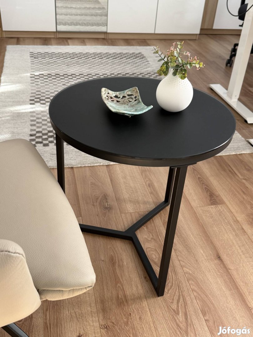 Kihasználatlanság miatt eladó a képen látható kerek kisasztal. Lábak fémből, asztallap üvegből készült.