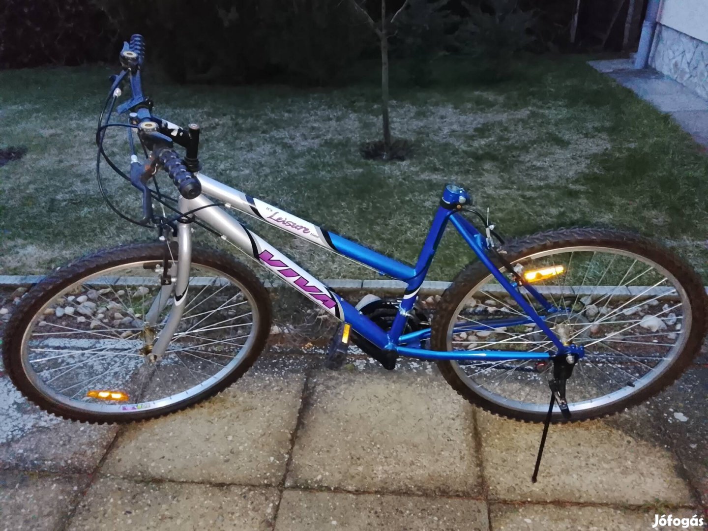 Kerékpár, szép, megkímélt állapotban, kerekek defektesek, egyik fékbovden cserés, ülés nélkül, 18 fokozatú, jó váltóval.