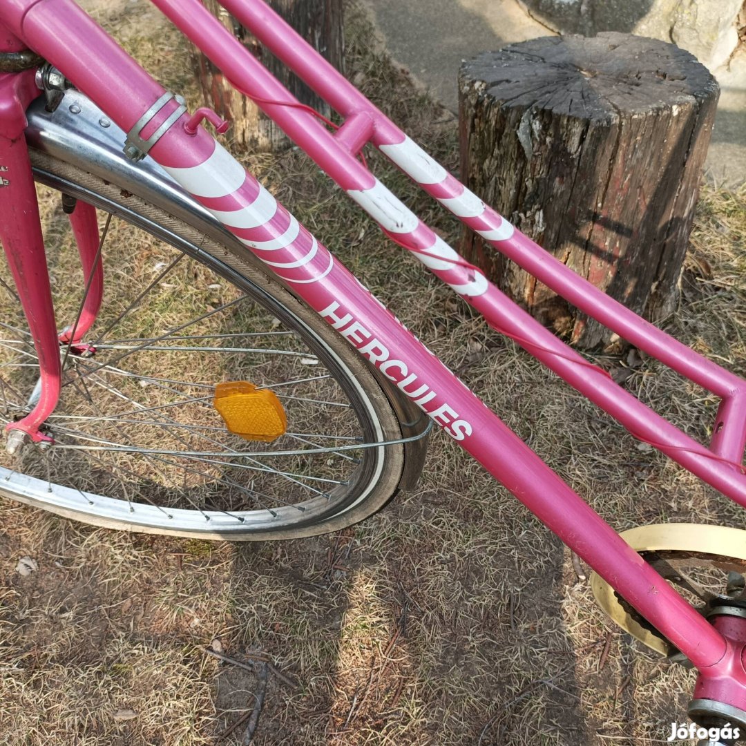 Eladó a képen látható jó állapotban lévő használt női kerékpár Herkules néven fék jó, világítás dinamorol, ülés új és kényelmes, gumik állapota cserére szorul ezért csak az ára 45000-ft , szállítás megoldható utánvéttellel a vevő terhére telefon vagy üzenet érdeklődés köszönöm szépen viszlát