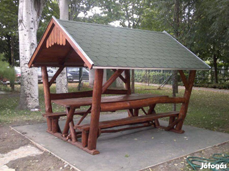Új gyártásu kerti rönk pavilonok, kiülők, szaletlik, sörpadok 8, 10, személyes kivitelben. zsindellyel fedve. A faszerkezet festett kivitelben farontó gombál ellen kezelve. Mahagóni, tölgy, barna, vagy fenyő szinekben. (árkülömbözet nincs).