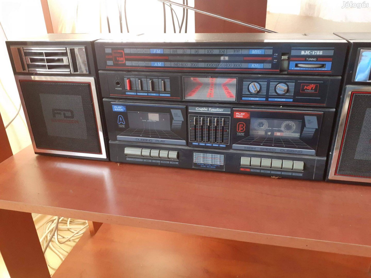 Két kazettás rádiós magnó hangfalakkal fény effektekkel