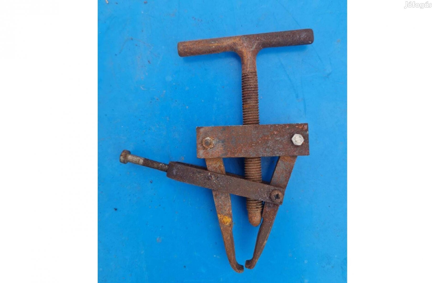 Csapágylehúzó vagy szeleplehúzó szerszám. Kétkaros mechanizmus menetes hajtással a szorítóerő kifejtéséhez.