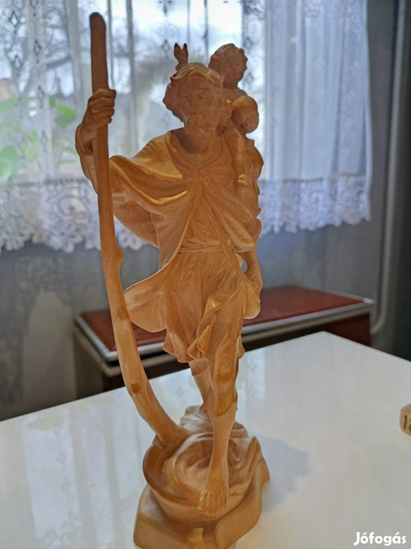 Kézzel faragott Szent Kristóf faszobor - 25 cm