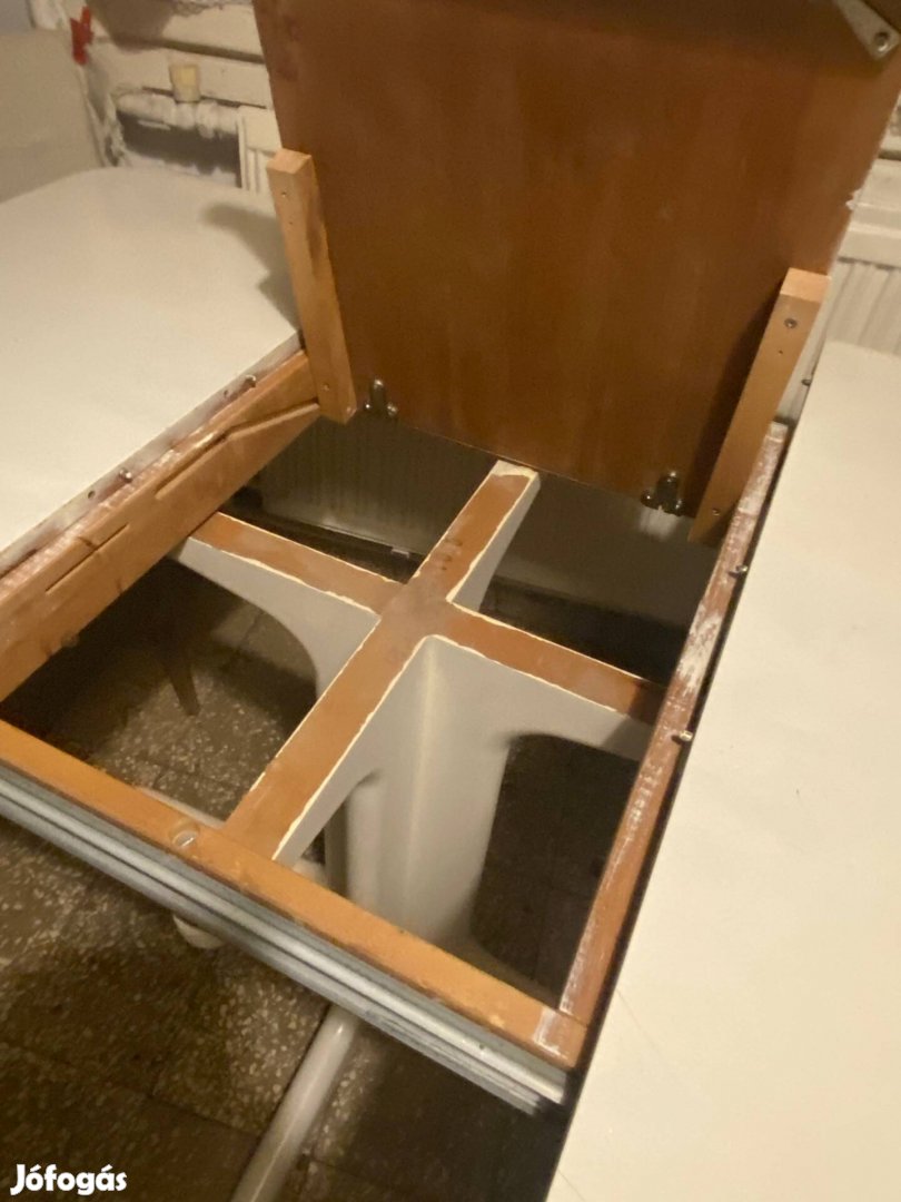Igazi asztalos munka, étkező asztal egy kézmozdulattal megnagyobbítható.