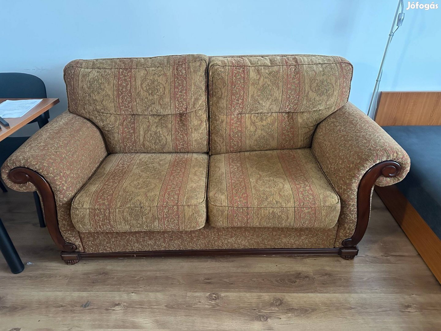 Eladó jó állapotú, masszív fa vázas, kihúzható kanapé. Kényelmes fekvőfelületté alakítható, vendégágynak is ideális. Kisebb esztétikai kopások előfordulnak, de stabil és jól használható.