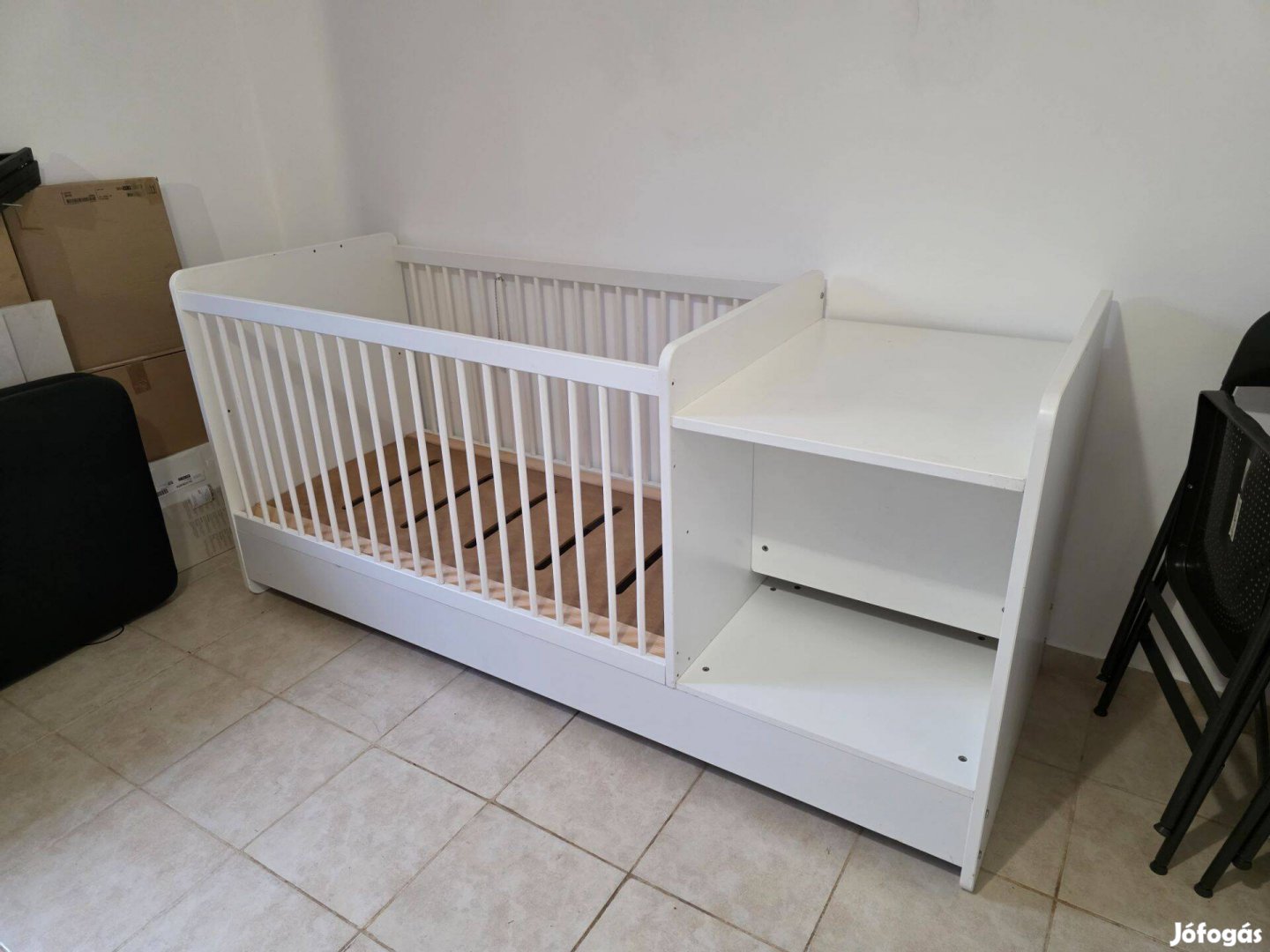 Gyermekágy pelenkázóval, ifjúsági ággyá alakítható.