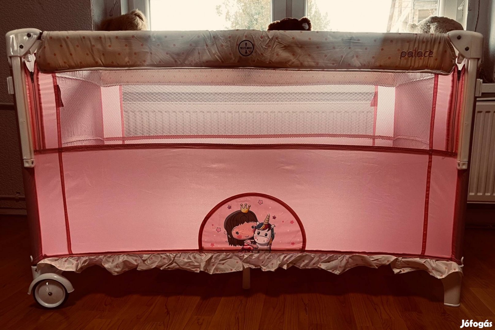 eladóvá vált rózsaszín,csajos kiságy. új állapotban van, minden része megvan. Mi csak rövid ideig használtuk utazáshoz, de tökéletes mindennapi alváshoz is.