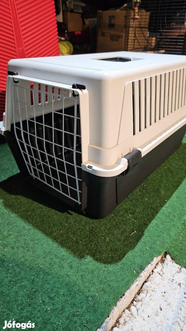 Nagyon keveset használt kisállathordozó, fehér-fekete színű. Méret: 58x35x36cm. Elől levehető vagy nyitható ráccsal.