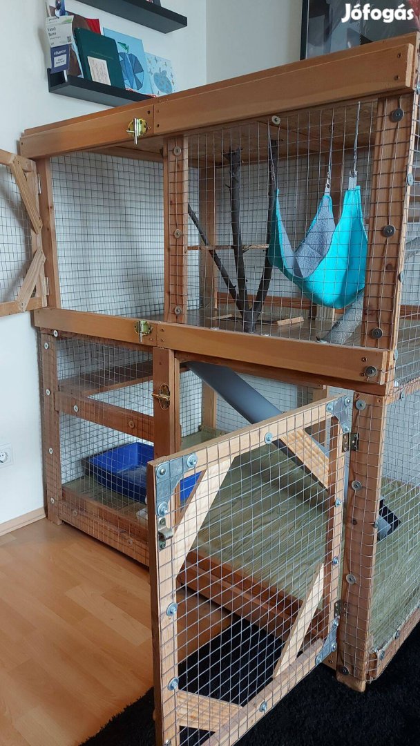 A ketrecet magunk készítettük, egy görénytenyésztő elvárásai szerint lett kialakítva, de más állatkának is tökéletes. Két részre bontva szállítható. Tartozéka minden, ami a képeken is látható.