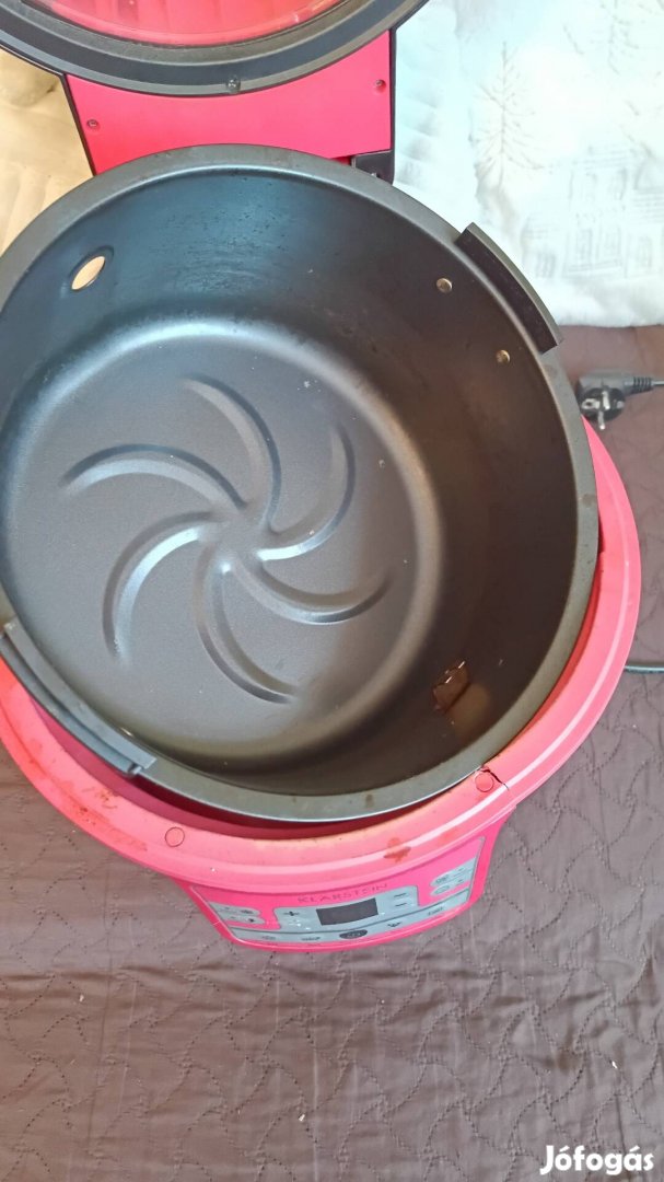 Eladó használt, működőképes forró levegős fritőz. A műanyag fala megrepedt és az edény teflon borítása sérült.