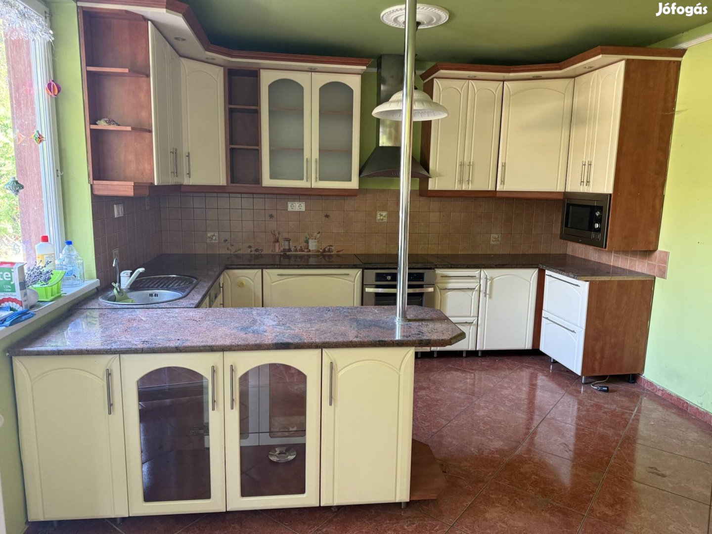 Eladó használt, de szép állapotú U alakú konyhabútor. Egyedül a mosogató alatti szekrény szorul javításra. Tartozik hozzá mosogatógép, villanysütő és főzőlap ill. egy mikro. A legszélesebb része 3,75 m. A konyhapult gránit. A szállításban nem tudok segíteni.