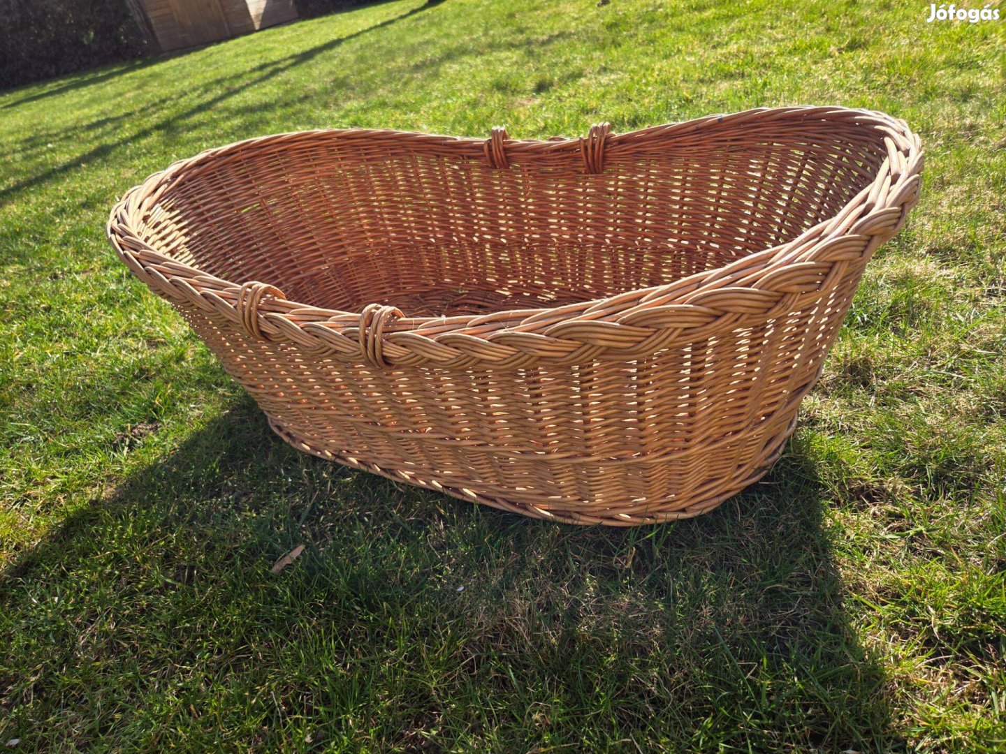 Eladó egy fonott mózeskosár. Jó állapotú. Babának, kisállatnak, vasalatlannak. Mi belső ajtóra rögzített fekvő babahintának használtuk alátámasztás mellett. Mérete: 85 x 48 x 27 cm. Átvehető személyesen Vecsésen, vagy Budapest Duna Plaza környékén, előzetesen egyeztetett időpontban. Csak olyan üzenetekre válaszolok, amelyikben nevet és telefonszámot is írnak. Köszönöm