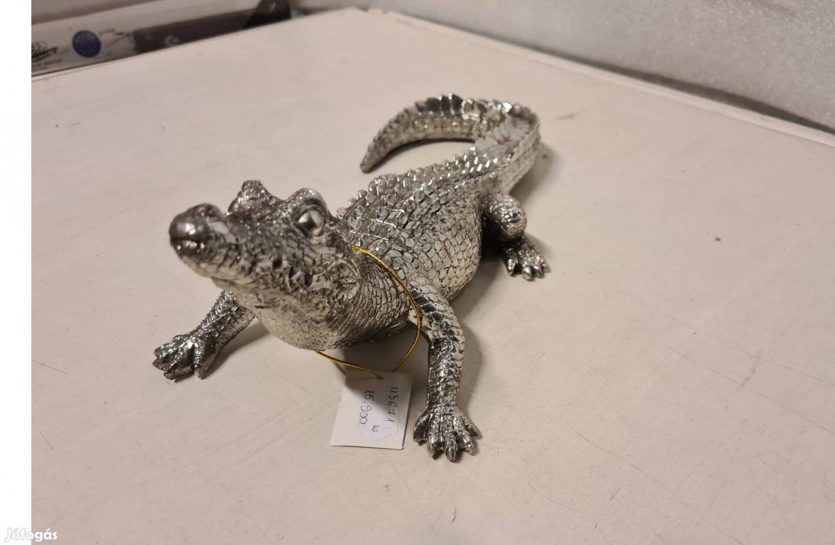 Krokodil szobor, figura ezüst színben 34 cm