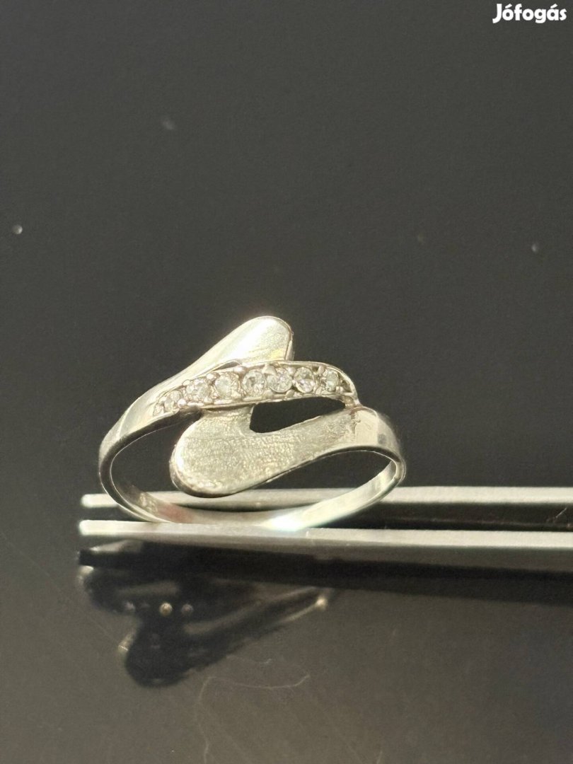 Eladó egy különleges, ragyogó csillogású, rendkívül mutatós, mégis kecses, Art-deco stílusú ezüst gyűrű, fehér cirkónia kövekkel ékesítve, tökéletes foglalatban.