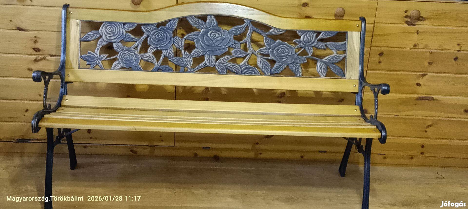 Dekoratív, rózsamintával díszített kerti pad, kültéri pad eladó.