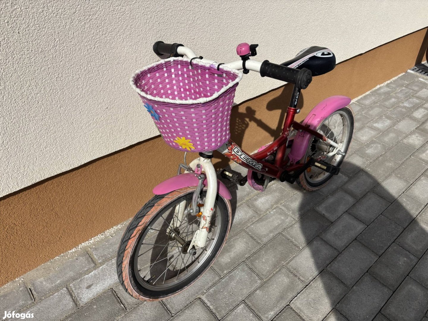 Használt, átlagos állapotú 16 colos lány bicikli eladó. Jól használható, kisebb esztétikai hibák előfordulnak rajta a használatból adódóan.