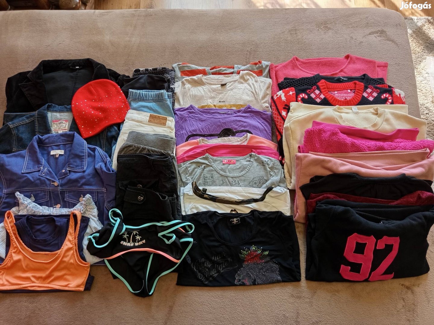 Saját ruhazarból eladó ruhák. Csak a kislányom használta. Minden használt. Apróbb hibák előfordulnak ( gomb hiányzik, folt, lyuk ). Nem néztem egyenként, de mivel használt minden darab, valószínűleg van pár hiba. Egymással jól kombinálható, szép csomag.