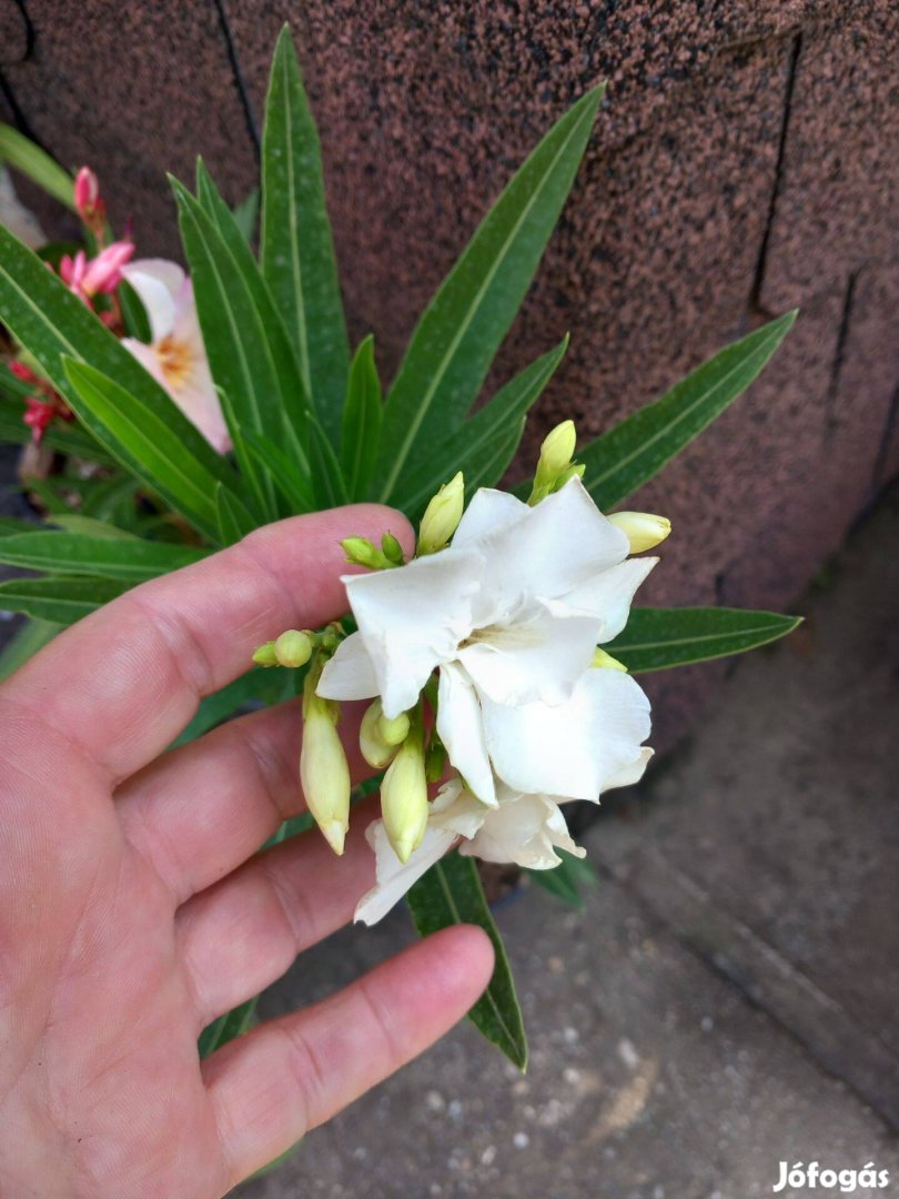Leander dupla szirmú fehér virág kb 30-40cm