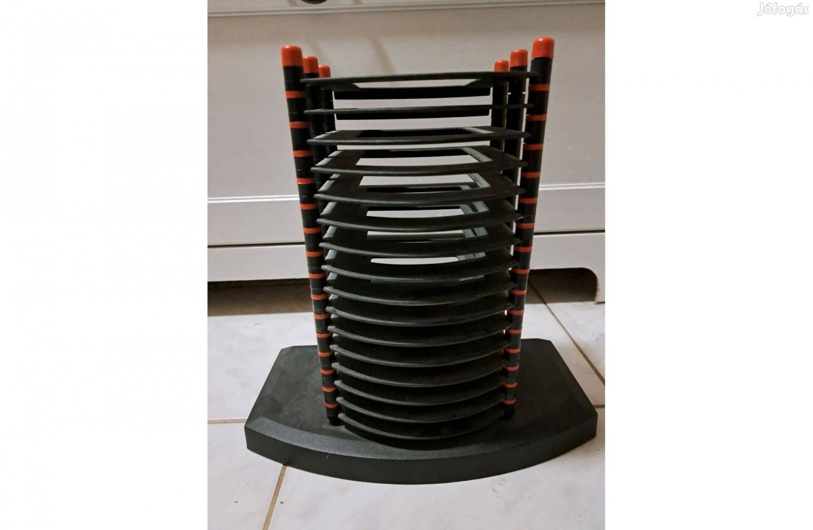 Eladó egy újszerű állapotban lévő, fekete-piros, műanyag, 16 férőhelyes CD/DVD lemeztartó állvány
