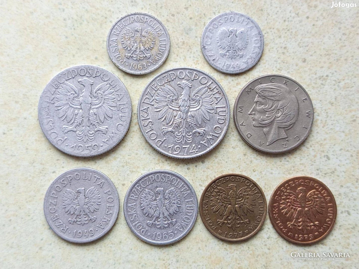Lengyelország 9 db Különböző Érme Groszy és Zlotyi 1949-1979