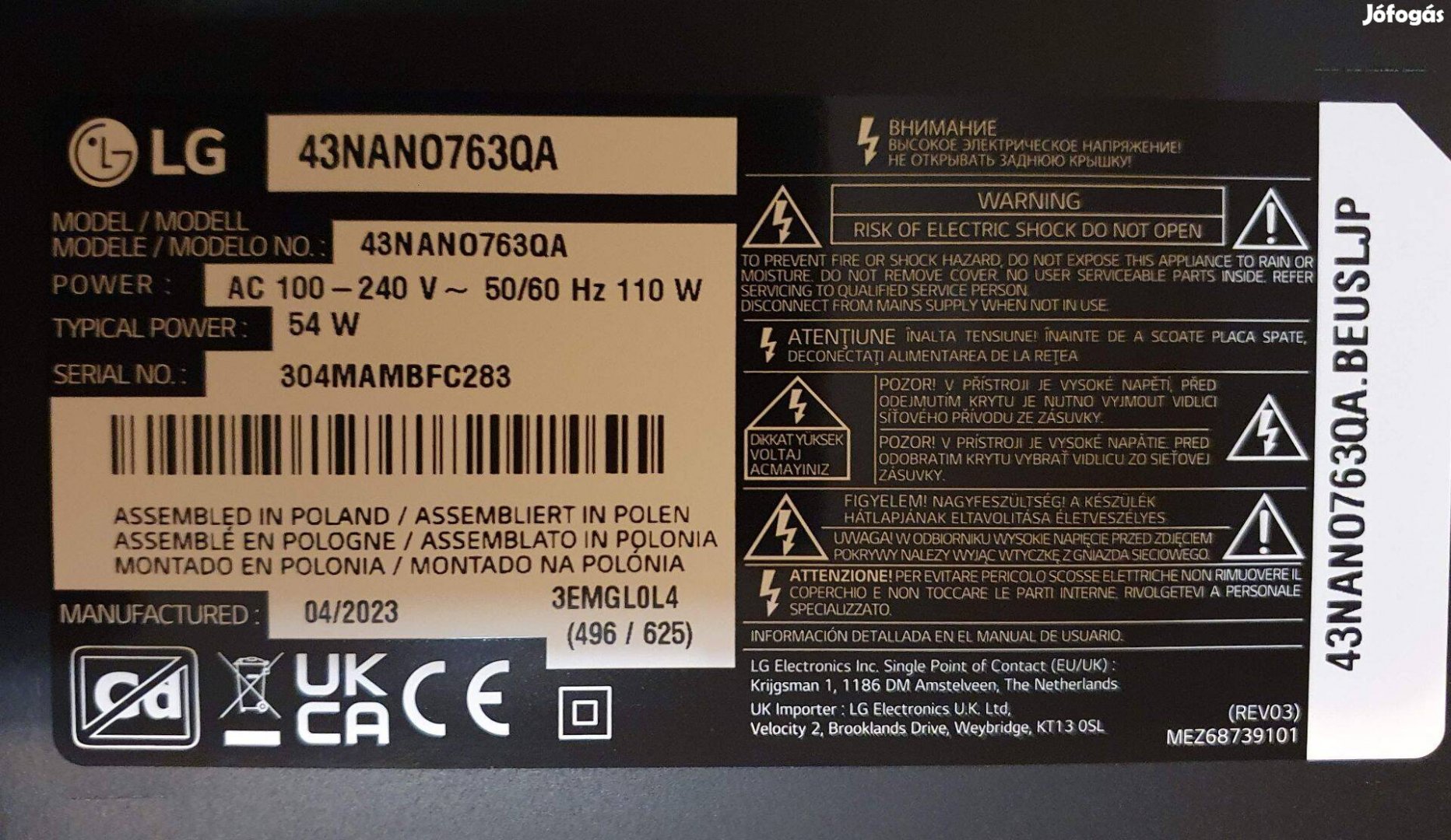 Lg 43Nano763QA LED LCD tv hibás törött alkatrésznek LJ22