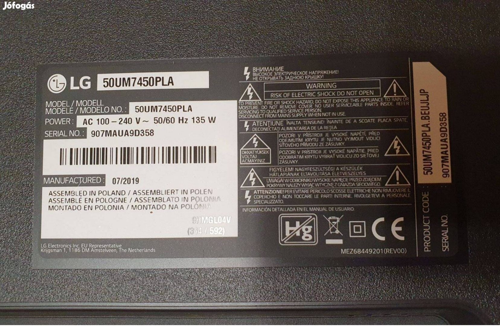 Lg 50UM7450PLA LED tv hibás törött alkatrésznek LJ9