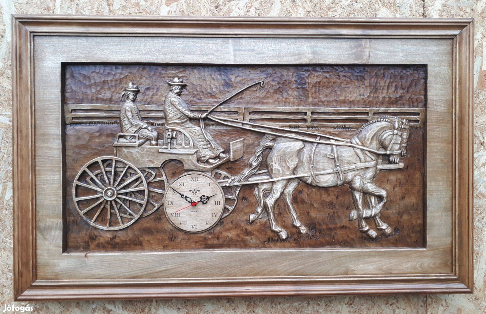 Kézi faragású egyedi lovaskép órával a lovak szerelmeseinek szülinapra,névnapra ,lovas
