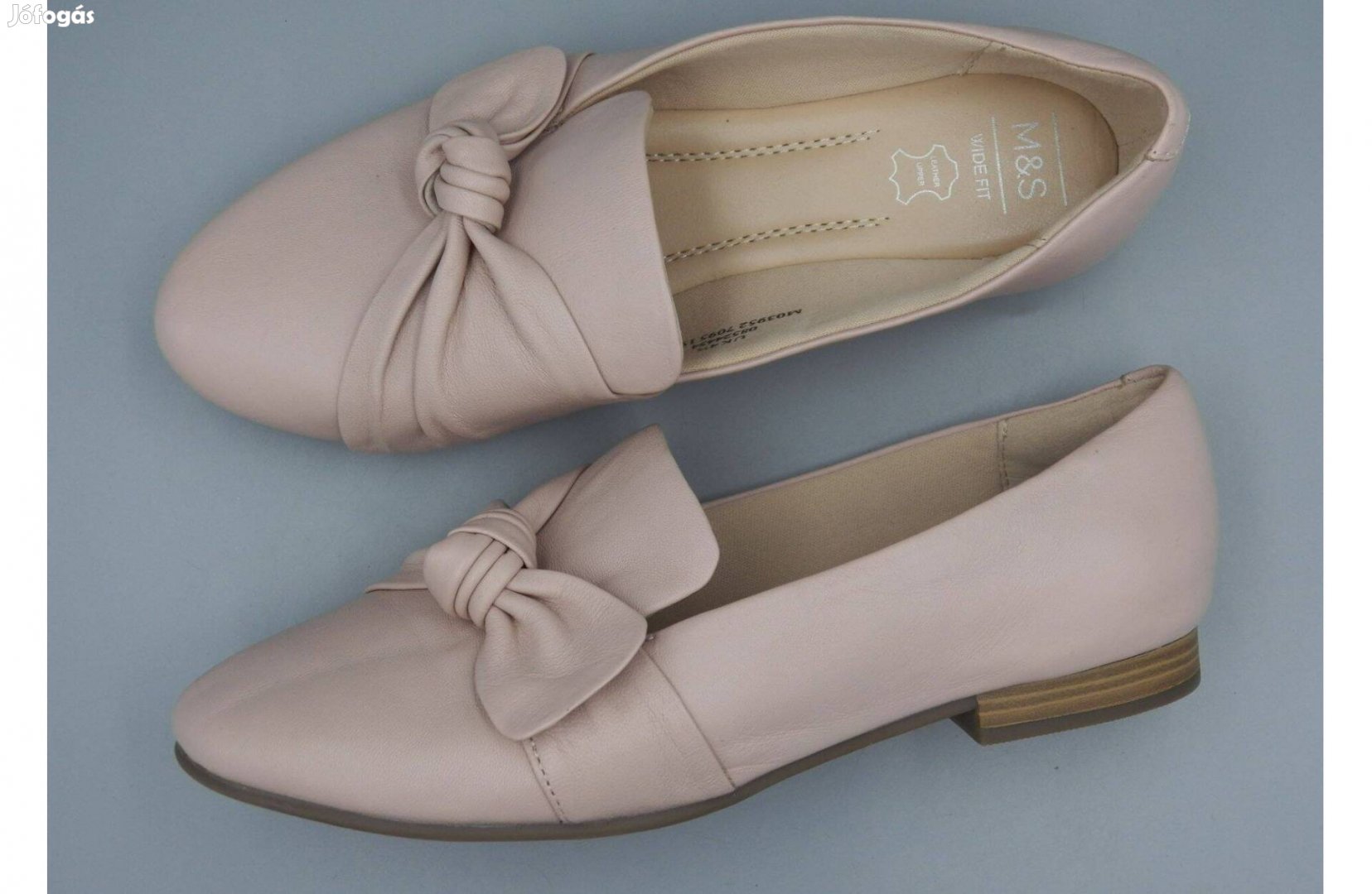 Keveset használt, hibátlan állapotú Marks & Spencer elegáns belebújós cipő világos púder színben. Felsőrésze valódi bőr, talpbélése bőrutánzat.