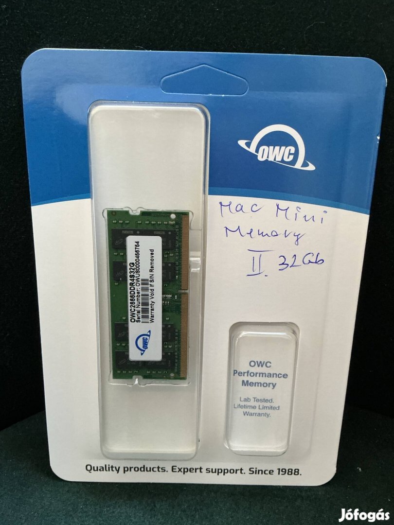 Két darab 32Gb-os OWC memória eladó Apple / Macintosh gépekbe.2018-2020-ig változatokba.DDR4s 2666Mhz-es.Az ára 136 ezer per darab vagy 270 ezer a kettő.Nem akarom postán küldeni mert elkallódhat.Külföldön vettem de az én 2023-as Macminimbe nem jó sajnos.