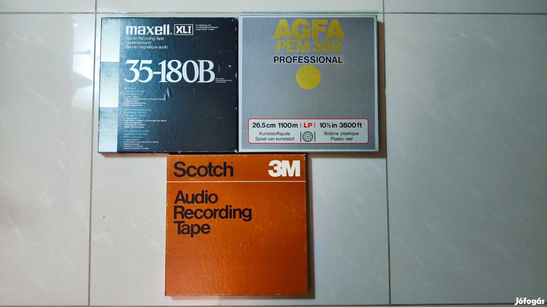 BASF Studio Master 911-es szalagok, tökéletes minőség tesztelve zenével és frekvenciával is. Mindegyik dobozban, fém orsón: 1 db Scotch orsón és dobozban és 1 db Scotch orsón Zonal dobozban, neylonban. Ár: 26.900,- Ft/db, a kettő együtt 50.000,- Ft. 1 db Maxell XLI 35-108B fém orsón - befűző rész nélkül - 22.000 Ft. 2 db AGFA PEM 369 Professional gyári új, nem használt 26,5 cm-es AGFA orsón 22.900 Ft/db, a kettő együtt 40.000,- Ft.