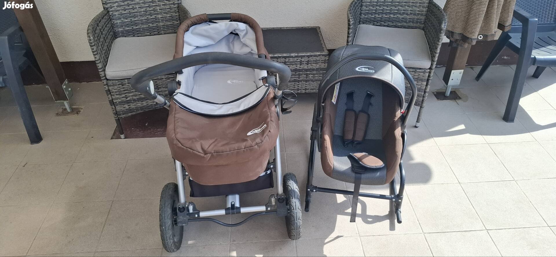 Eladó a képeken látható jó állapotú babakocsi. 4 részes: mózeskosár, sport, autósülés, hintaágy. A babakocsihoz jár 1 táska és egy esernyő is. Tartozék továbbá szúnyogháló és esővédő is. Átvétel személyesen javasolt Fóton vagy Budapesten