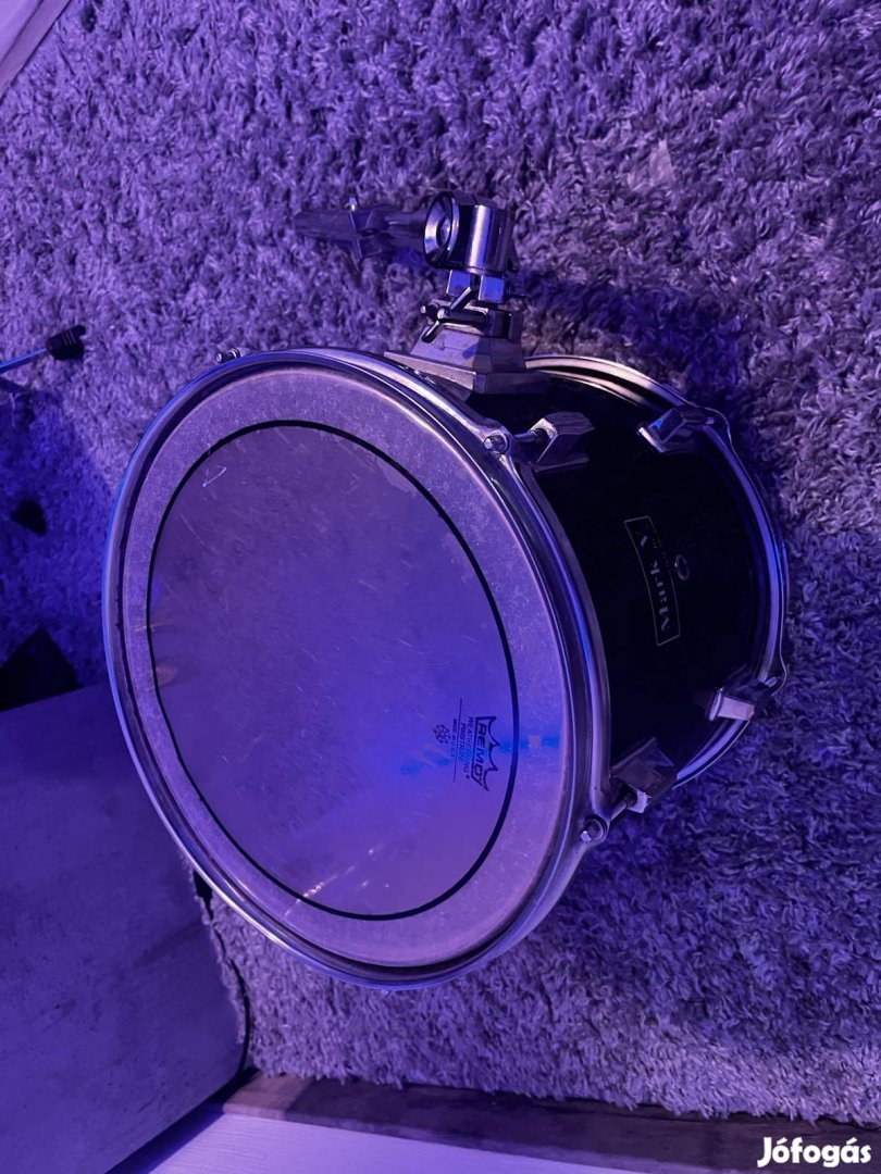 Szép állapotú Mark.V dobszett. Cintanyer nélkül, pergő állvánnyal. Láb dob fején kis szakadás.