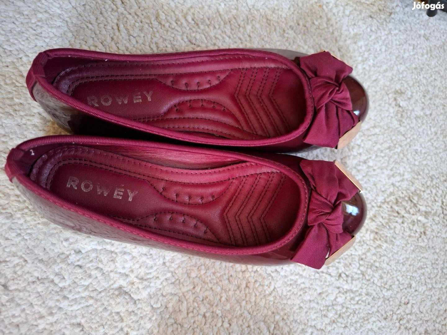 Eladó egy csinos, 38-as, meggypiros, masnis női cipő.