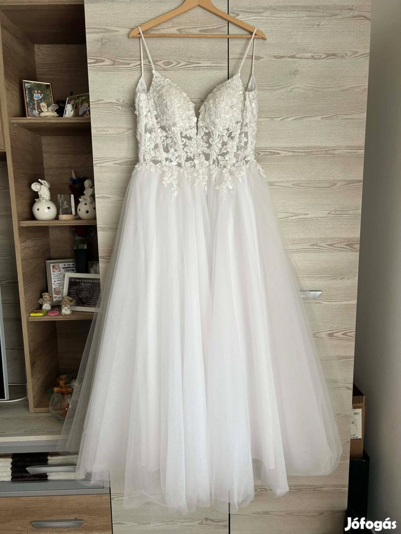 Egyszer viselt szalagavatón S méretű (de alakítható) abronccsal együtt egy részes mennyasszonyi ruha.