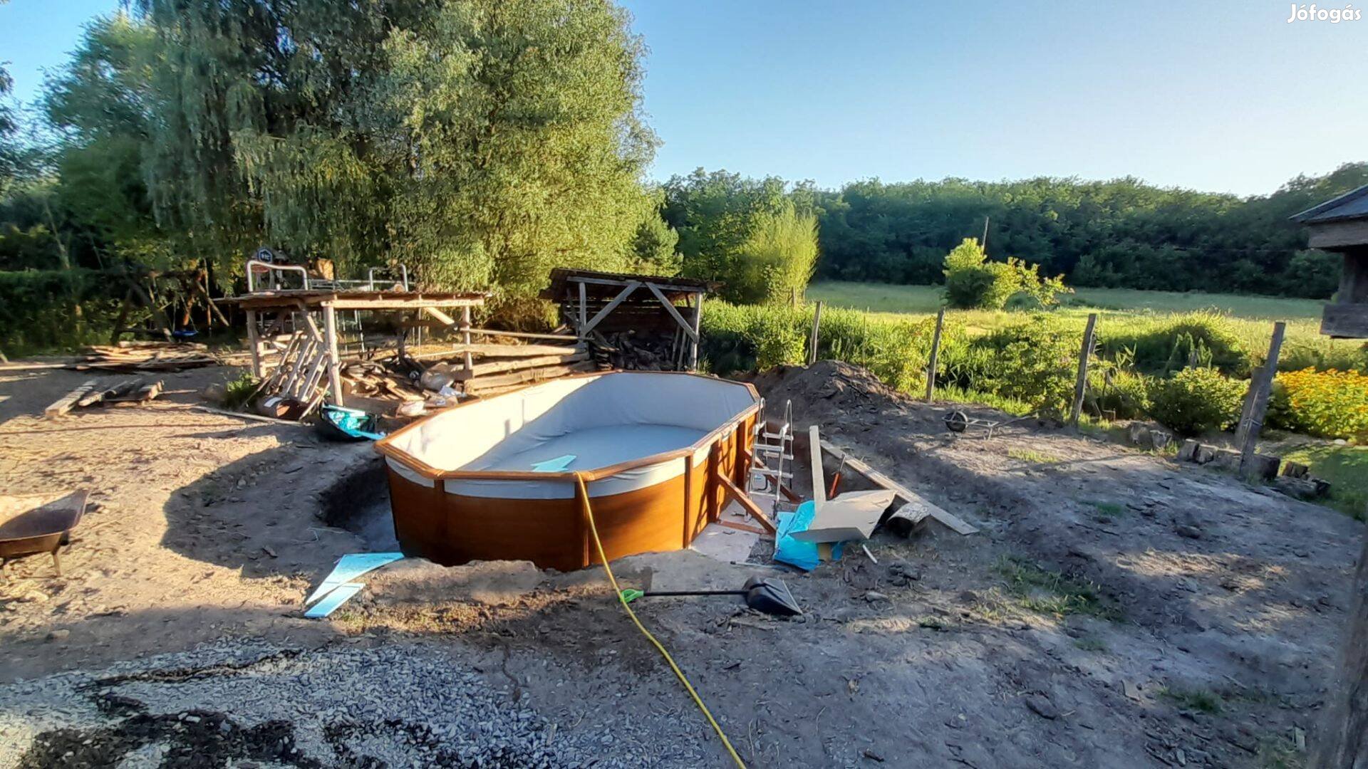 Egy szezont használt medence, hiánytalanul, minden alkatrészével eladó.