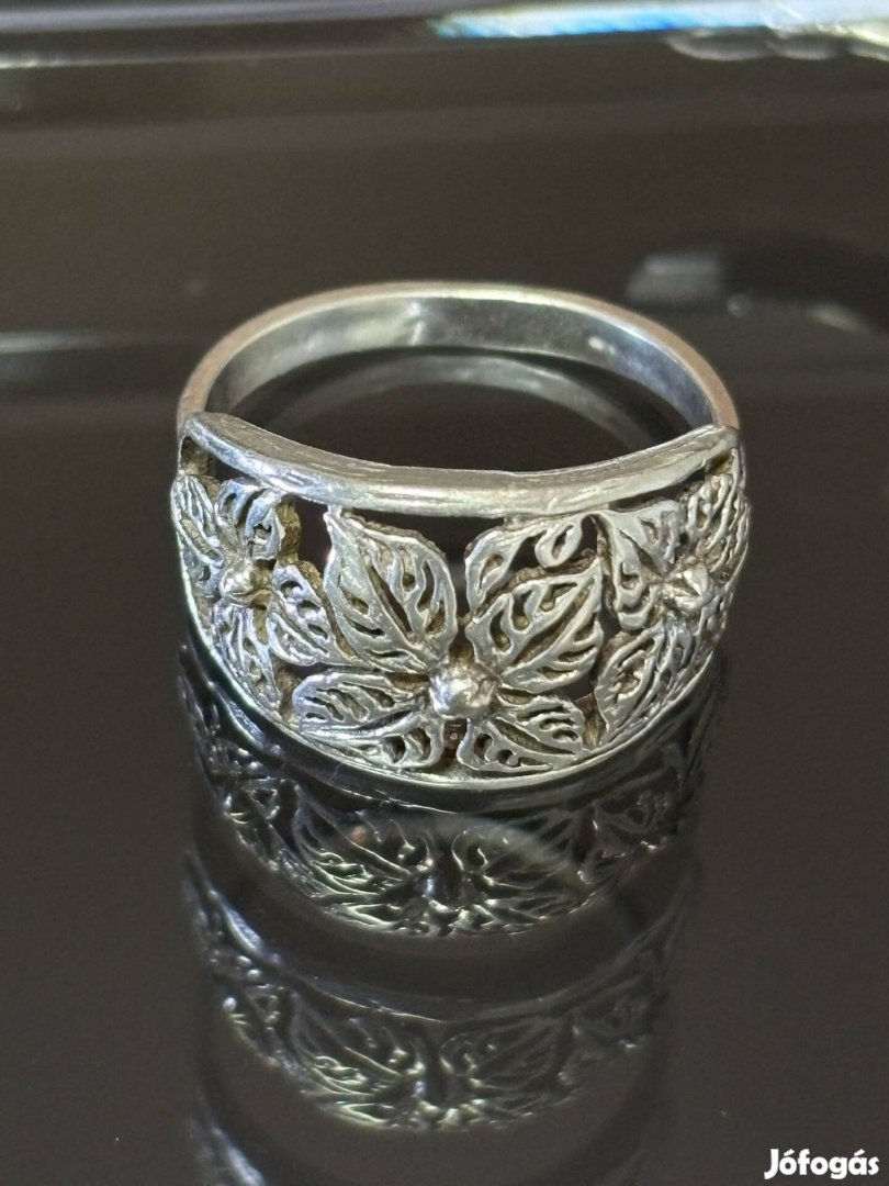 Eladó egy Mesés, hihetetlen mutatós, ragyogó csillogású, áttört mintás, antik, masszív ezüst gyűrű, tökéletesen kidolgozott virág motívummal.