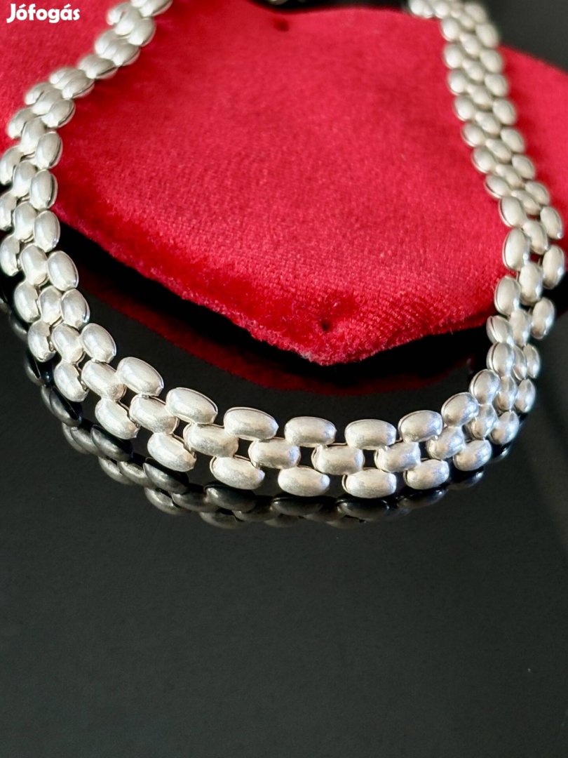 Eladó egy Mesés, rendkívül mutatós, különleges, ragyogó csillogású-magasfényű, Három soros, Masszív ezüst nyaklánc-nyakék.