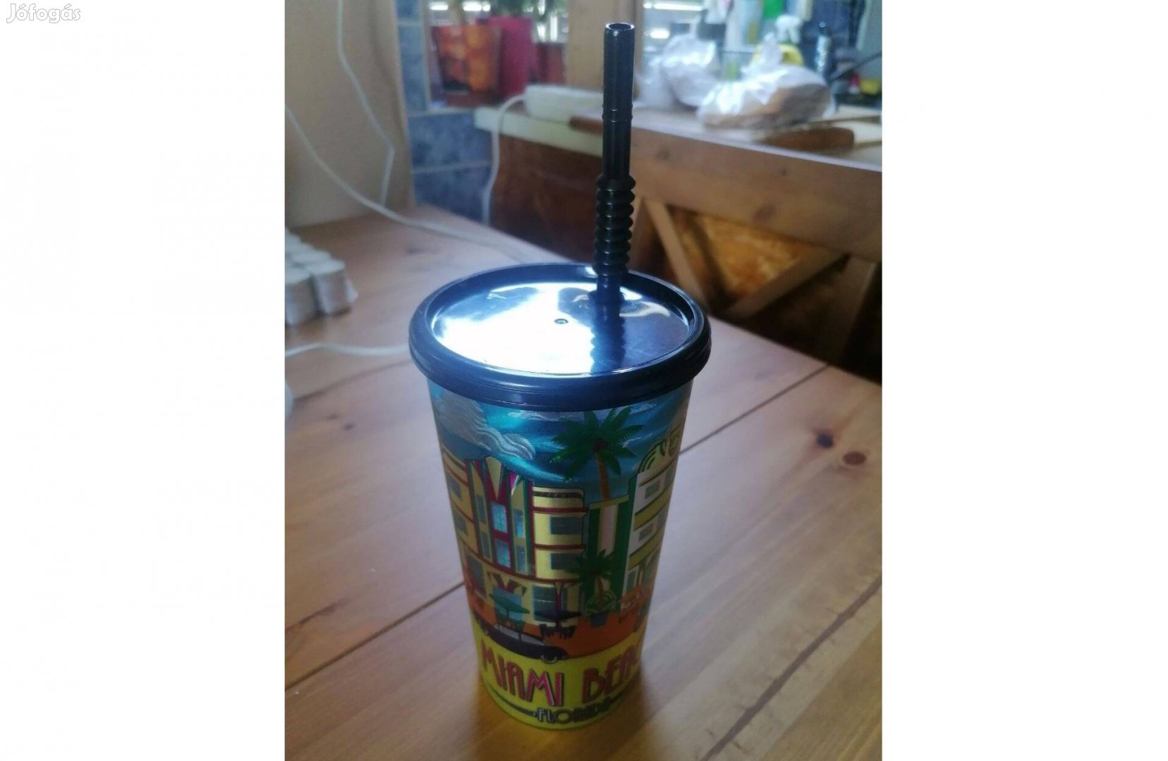 Miami Beach feliratú műanyag pohár, szívószállal eladó!