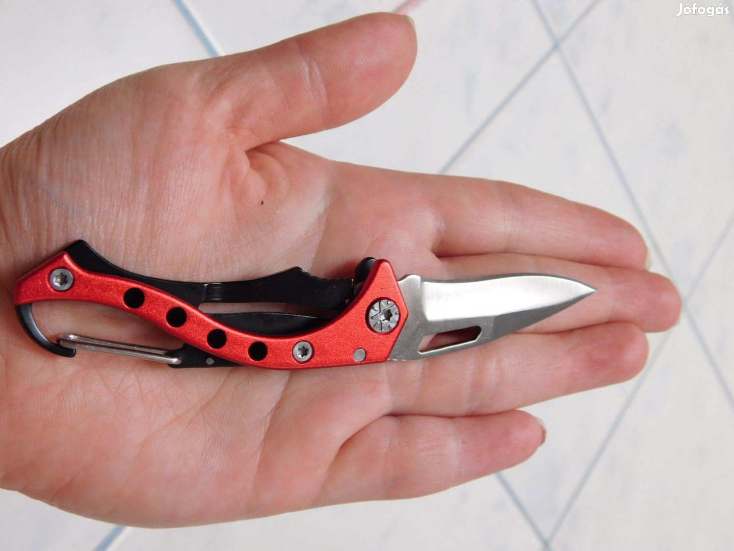 Mini karabineres zseb bicska, kinyitható pengével eladó. Kék és piros színben van készleten. Az egyik oldala kék, a másik oldala fekete vagy az egyik oldala piros, a másik oldala fekete. A penge hossza 4.8 cm, a teljes hossz kinyitva 11.8 cm, a teljes hossz a pengét becsukva 7 cm. A termék új, sosem használt. A szerkezet stabil, erős. A kés háza alumínium. Rugós benyomható karabiner akasztó övre vagy kulcscsomóra. Nagyon éles. Kék és piros színben is készleten van.