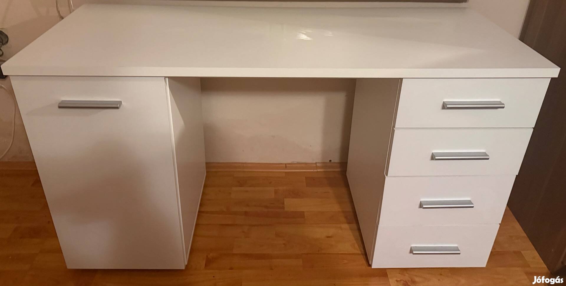 * Tárolókapacitás: Rendkívül praktikus elosztás: 4 tágas fiók a jobb oldalon és 1 polcos szekrény a bal oldalon.