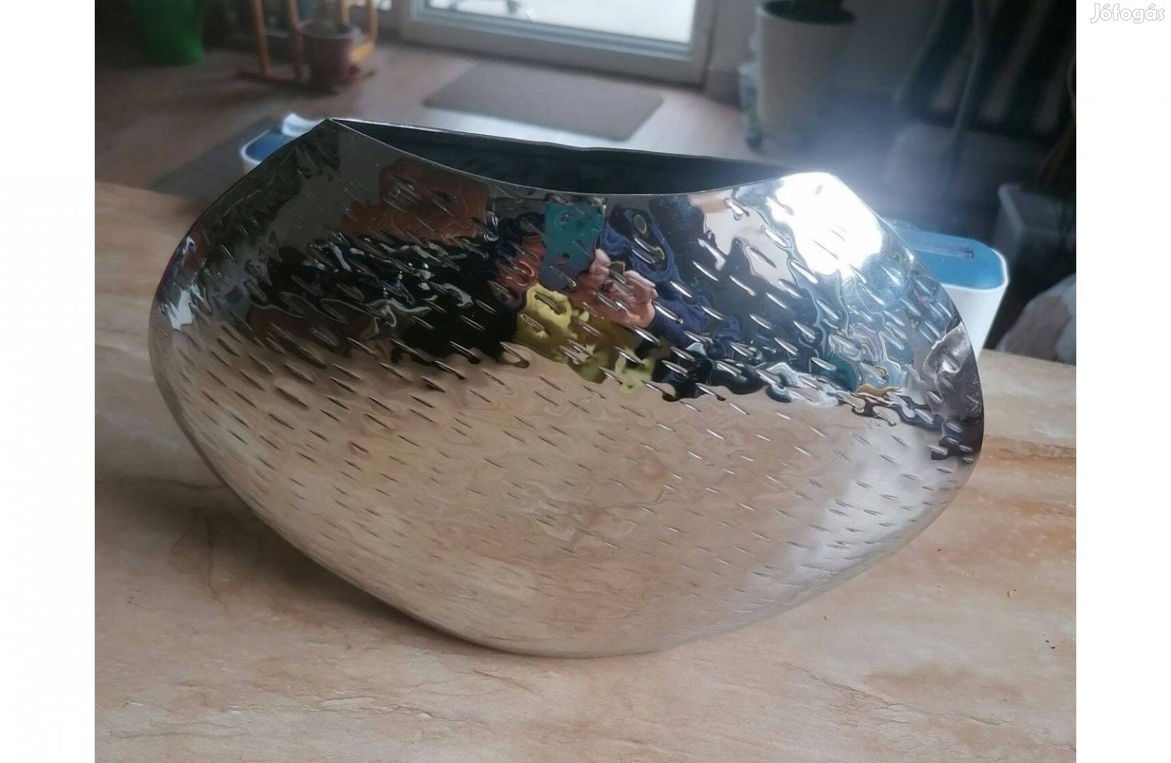Modern, formatervezett, lapos fém váza eladó!