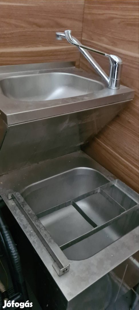 Rozsdamentes mosogató kézmosó kiöntővel.