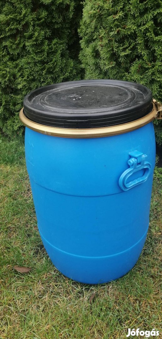 50 literes müanyag hordó levehető tetővel, tömítéssel, csattal eladó.