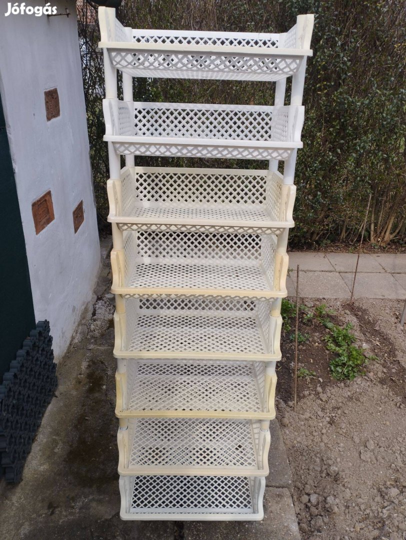 Eladó 35 db.műanyag tároló polc. Irány ár: 300- Ft./ db.
