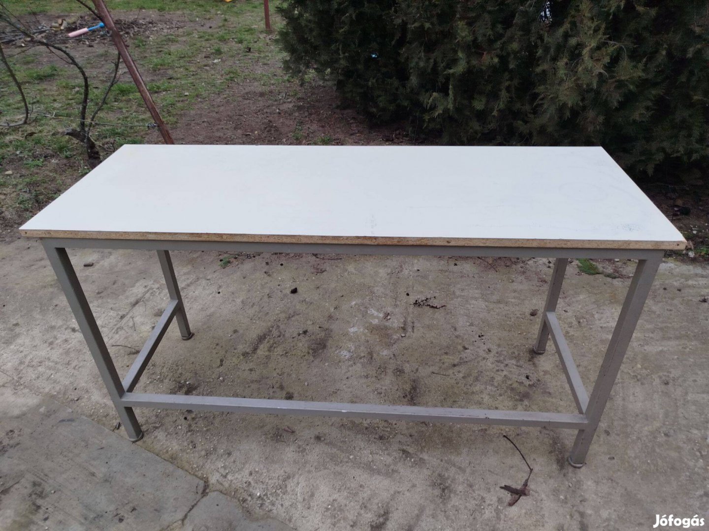 Eladó ipari minőségű vas vázas asztal. Nagyon erős, masszív kivitel. 30x30x2 mm-es zárt szelvényből készült a váz, mely korrozió gátló alapozó illetve ezt fedő szürke színű festékkel került kezelésre. Minden láb magassága állítható a vegükben elhelyezkedő menetes szárú talpakkal,így szinte bármilyen egyenetlen felületen stabilan beállítható. Az asztal lemeze masszív és kemény speciális ragasztott lemez, megy vegyianyag álló is. Személyesen átvehető Monorierdőn.