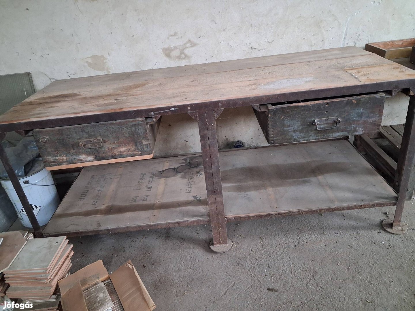 Eladó a képen látható 200x70x80 cm-es két fiókos retro munkapad.