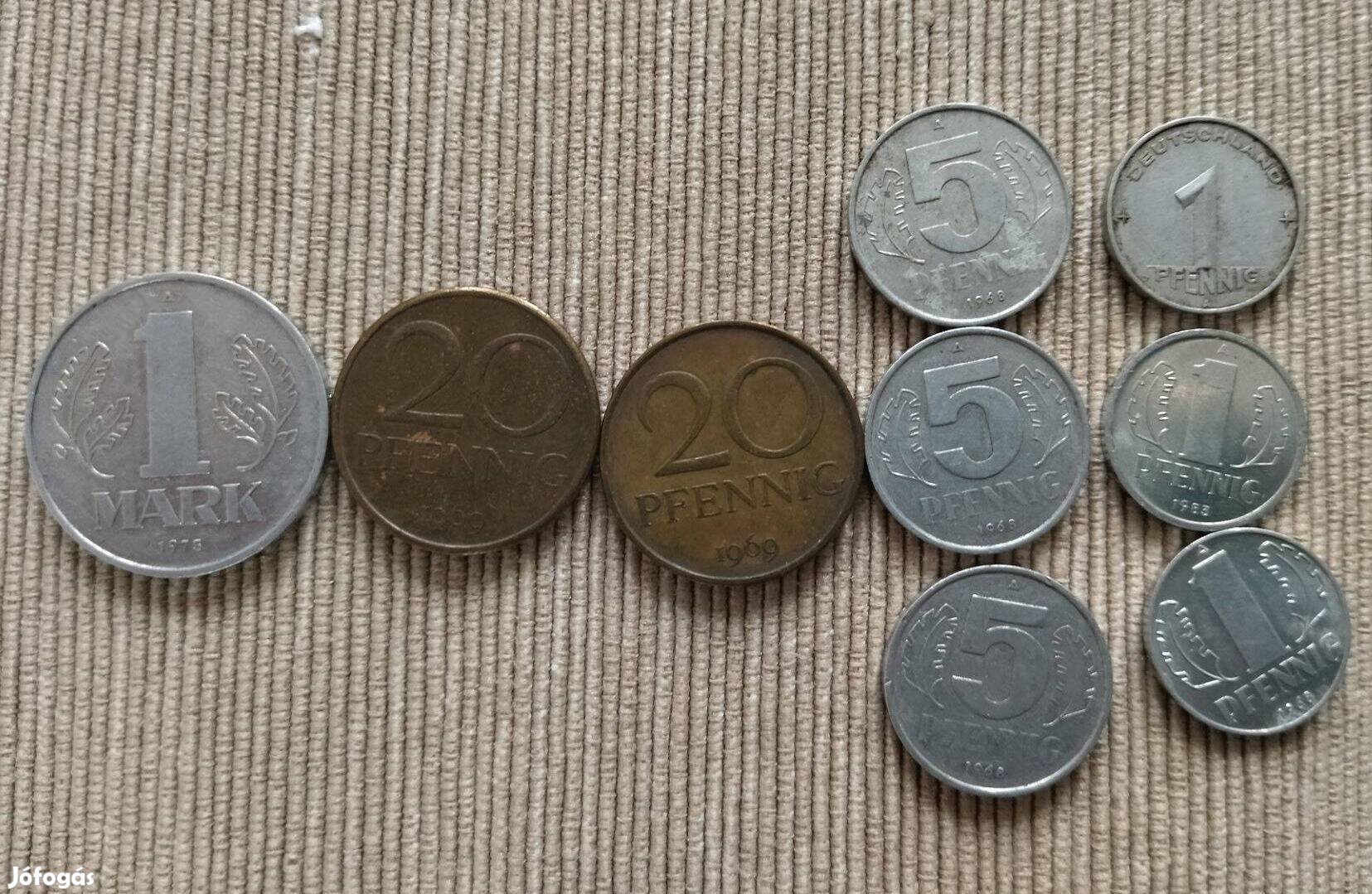 NDK-ban kiadott márka és pfennig érmék, összesen 9 db.